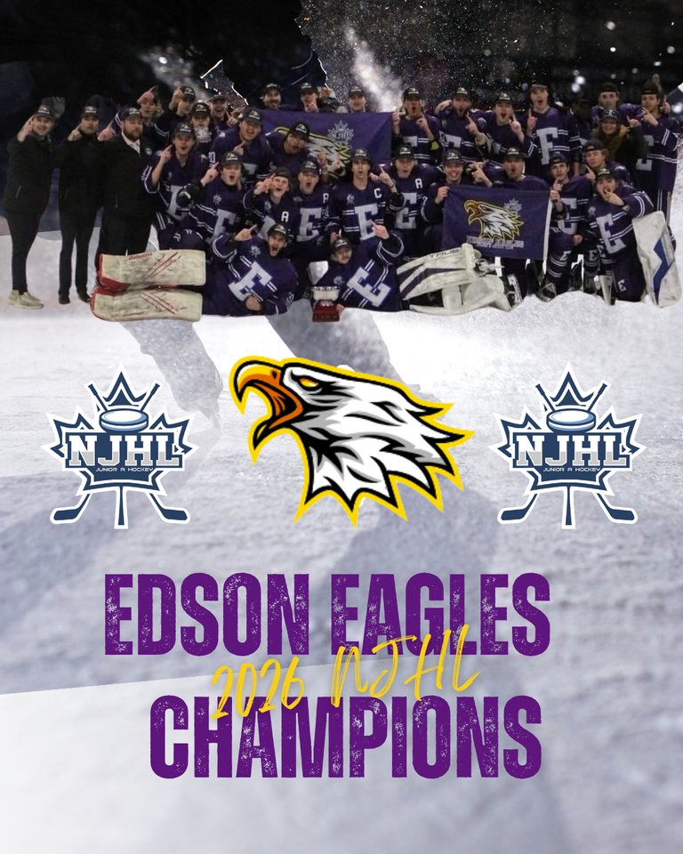 The Edson Eagles Junior A Hockey are the 2026 NJHL League Champions! With hard work, dedication, and a never-give-up attitude, the Eagles have earned their spot at the top. Congratulations to the entire team, coaches, management, ownership and fans for making this victory possible!